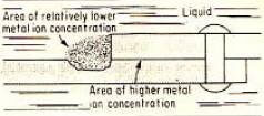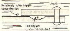 Кислород легко доступен снаружи соединения, который будет действовать как катодный наконечник в цепи. Часть внутри точки соединения будет служить анодом. Из-за постепенно уменьшающейся плотности кислорода в части между точкой соединения разность электрических потенциалов будет увеличиваться.