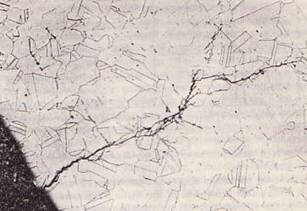 Стали, содержащие алюминий, более устойчивы к коррозионному растрескиванию под напряжением, так как алюминий реагирует с азотом с образованием нитрата алюминия. Некоторые нержавеющие стали более подвержены коррозионному растрескиванию под напряжением в средах, содержащих хлорит, таких как хлорит натрия, такой как хлорит кальция. Проблема коррозионного растрескивания является проблемой, возникающей при использовании аустенитных сталей в хлоритсодержащих средах. На рис. 10 показана трещина растяжения и коррозии аустенитной нержавеющей стали марки 304.